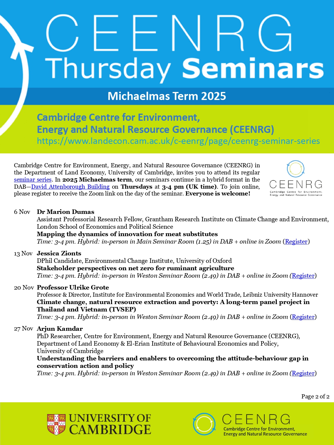 https://www.landecon.cam.ac.uk/page/ceenrg-seminar-series